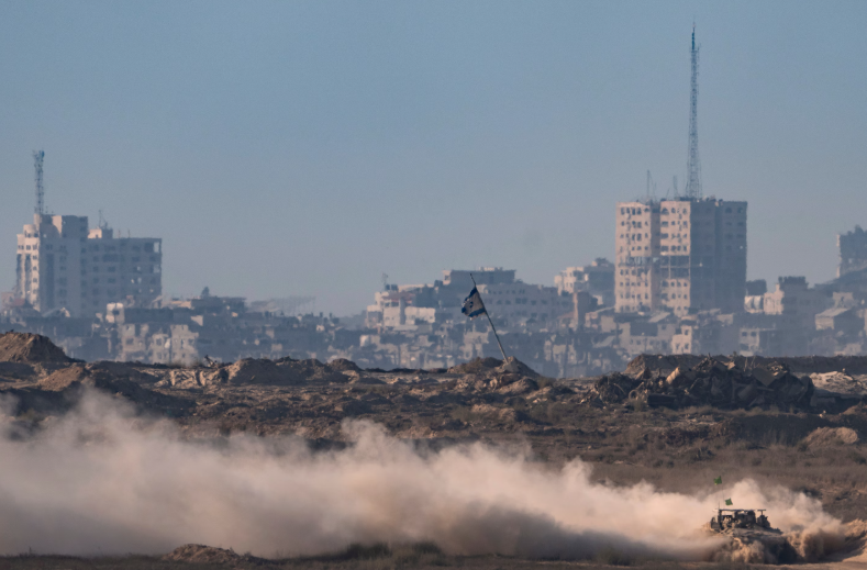 Όχημα του ισραηλινού στρατού στη Λωρίδα της Γάζας την Παρασκευή. (Maya Levin/AP)