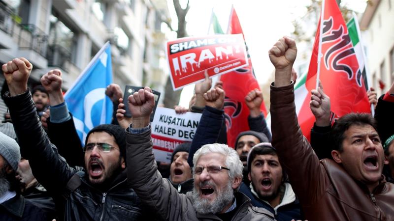 A large crowd in Istanbul protested in December against the involvement of Iran in the Syrian conflict and the attacks on Aleppo [Sedat Suna/EPA]