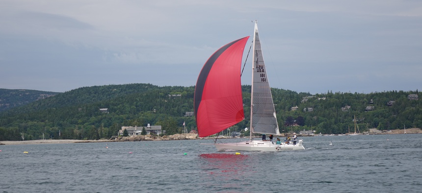 A sailboat passing by Seal Harbor Beach on Mount Desert Island. TIMOTHY B. CLARK