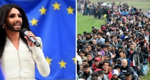 A cosmopolitan easy going agnostic world, in which the single market and currency have made nationalism obsolete. Indeed, a world where the European Parliament invites a long haired bearded shemale to perform in front of its building and announces him/her as “The voice of Europe” singing for equality, without anyone batting an eye.